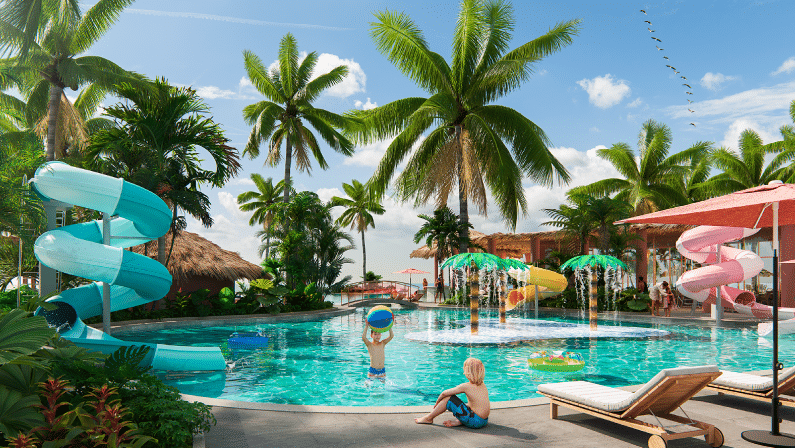 Piscinas, Terrazas, Salon de eventos, parquedaero, Gimnacio, juegos infantiles y Lobby, Spa, mini golf, club náutico.