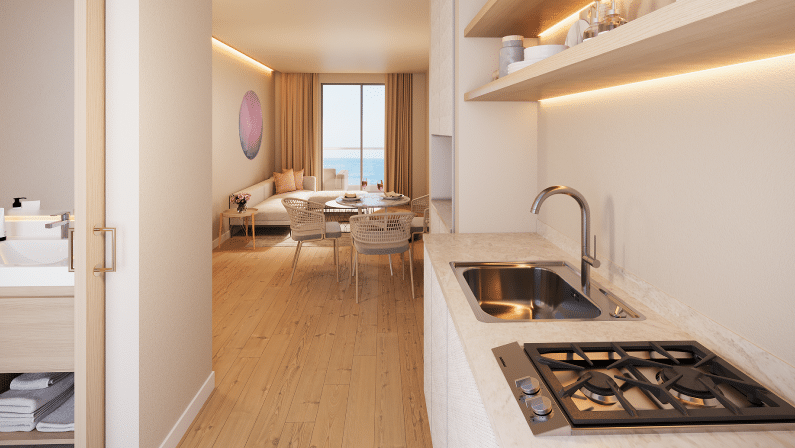 Además, cuenta con terrazas escalonadas de uso común, un exclusivo restaurante y rooftop, y acceso a un club de playa privado con: